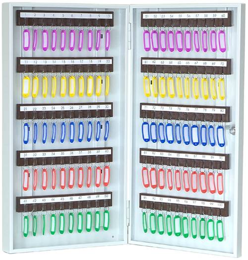 Ключница КЛ-100 предназначена для хранения 100 комплектов ключей. На задней стенке корпуса расположены отверстия для крепления. Ключница комплектуется 10 планками под навеску ключей. В дверь установлен замок типа «Cam-Lock».