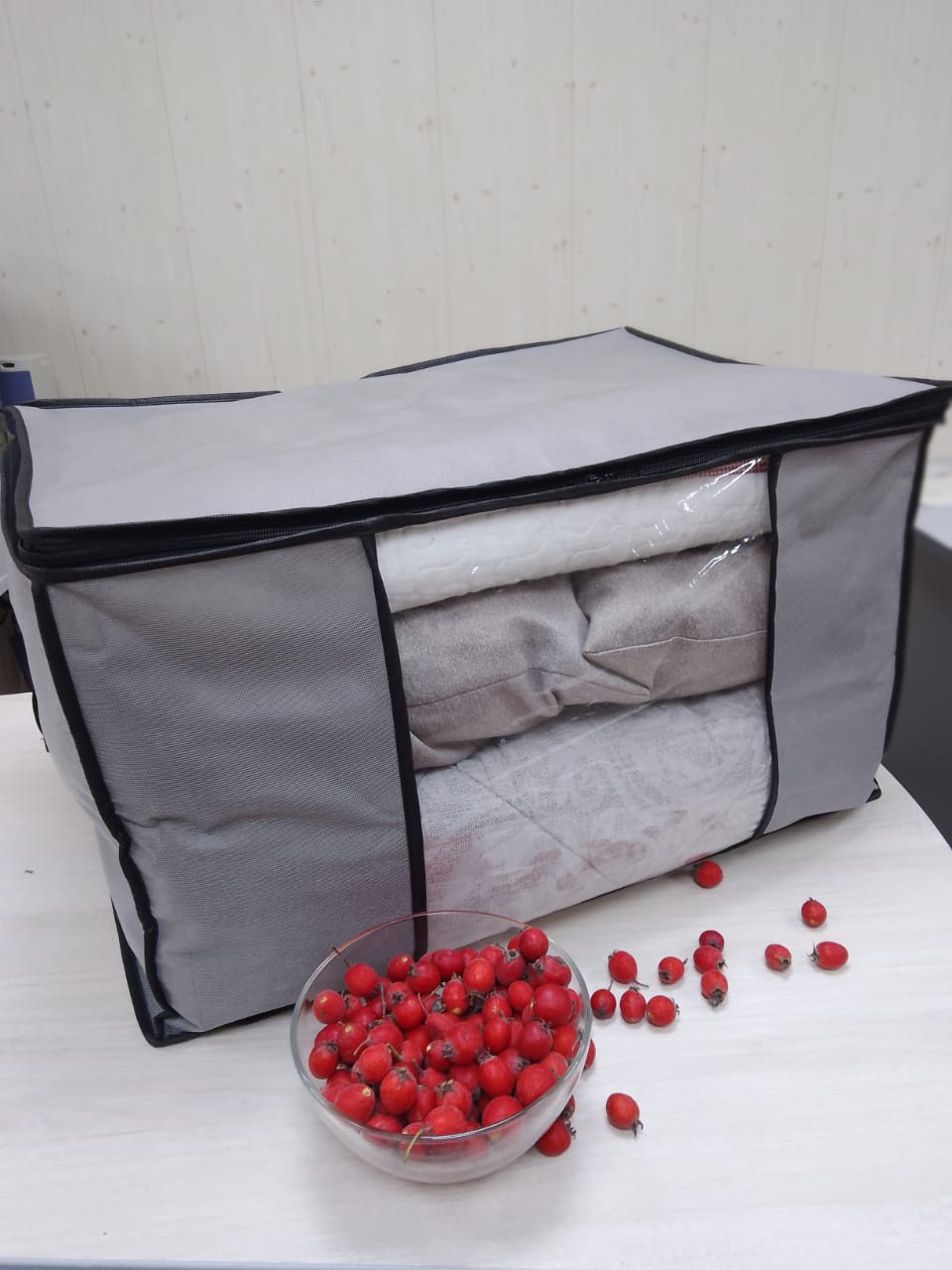 Размеры 60х90 см. Материал спанбонд, рулонная молния, две ручки, окантовка