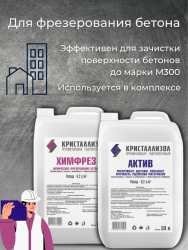Двухкомпонентный комплекс для химического фрезерования бетона, усиления адгезии гидроизоляционных покрытий и наливных полов с бетонной конструкцией.