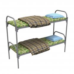 нашего интернет-магазина предлагает комплексно решить вопрос оборудования спального места в рабочих общежитиях. У нас можно купить двухъярусную металлическую кровать, укомплектованную недорогим ватным матрасом, подушкой и одеялом. Мы продаем бюджетную и надежную мебель из металла для организации отдыха персонала. Цена комплекта ЭКОНОМ-2 доступная, т.к. наша торговая площадка работает напрямую с производителями кроватей и спальных принадлежностей. Два яруса позволяют более эффективно использовать полезную площадь помещения.