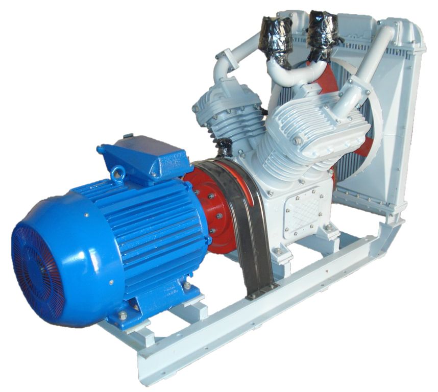 Компрессор 4ВУ 1-5/9 – двухступенчатая установка с трёхфазным асинхронным электроприводом, подключённым через упругую муфту с принудительной смазкой и воздушным охлаждением. Тип компрессора 4ВУ1-5/9 - поршневой, V-образный, четырехрядный, четырехцилиндровый, двухступенчатый, простого действия.