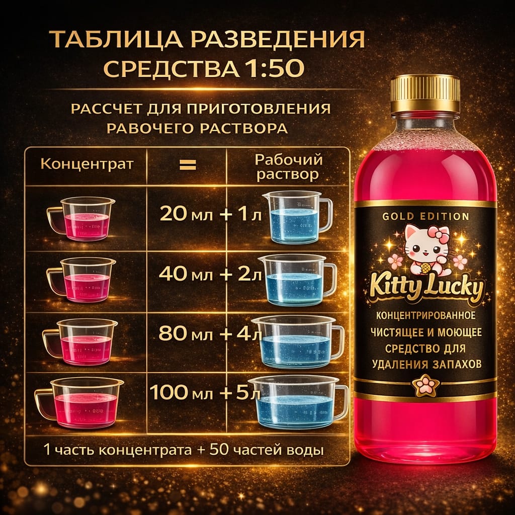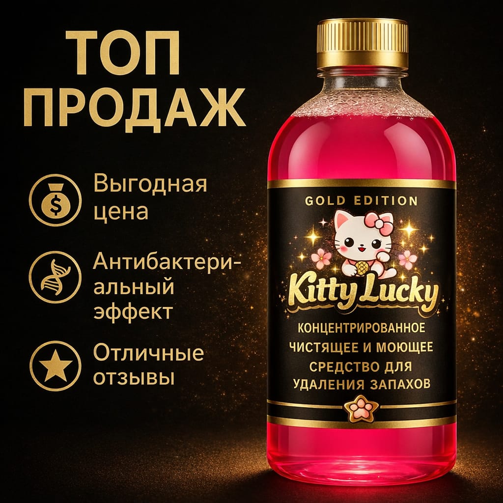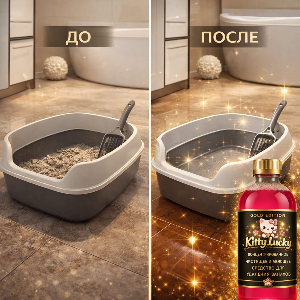 Kitty Lucky — это высокоэффективный концентрированный дезодорирующий и моющий состав для кошачьего лотка, созданный для быстрого и полного устранения неприятных запахов в доме.