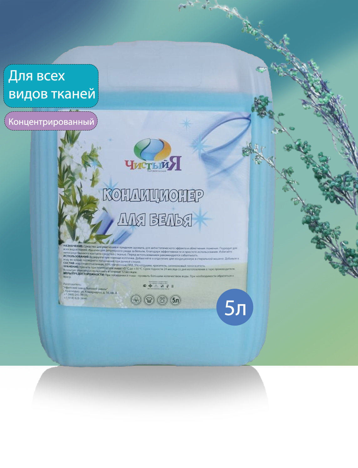 Кондиционер для белья ЧистыйЯ - средство для умягчения и придания аромата, для антистатического эффекта и облегчения глажения. Подходит для детского белья. Подходит для всех видов тканей. Для стиральных машин и ручной стирки. Идеален для регулярного ухода за бельем, благодаря эффективности и простоте использования.