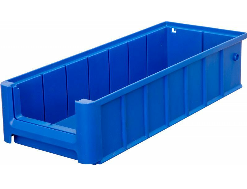 • Особенность контейнераполочного SK 41509 размером400x155x90 мм и синего цвета в том, что кромка днища закруглена так, что даже самая маленькая деталь легко вынимается
