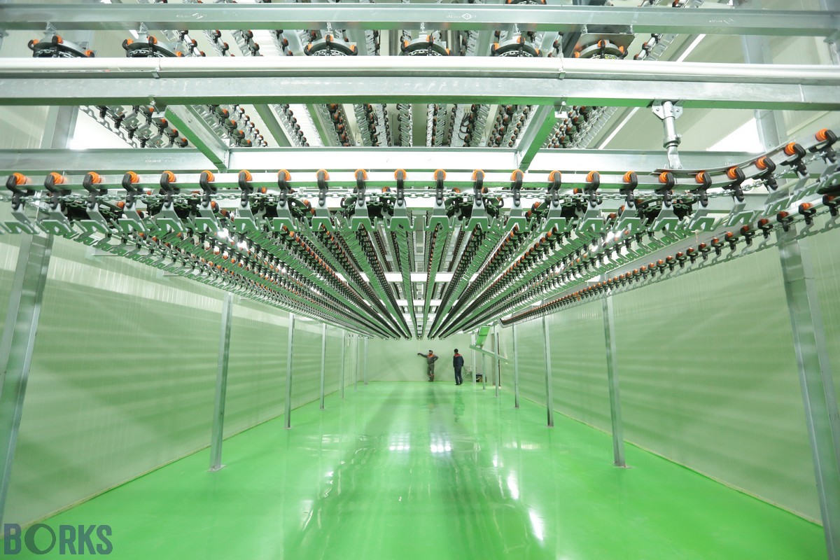 В конвейерных линиях, достигающих на объектах с высоки ми объемами производства длины в 4-5 километров, важное значение имеет безопасность и устойчивость, натяжение и баланс. Благодаря многоуровневой системе, в случае увеличения объемов производства возможна модификация линии путем добавления дополнительных уровней конвейера.
