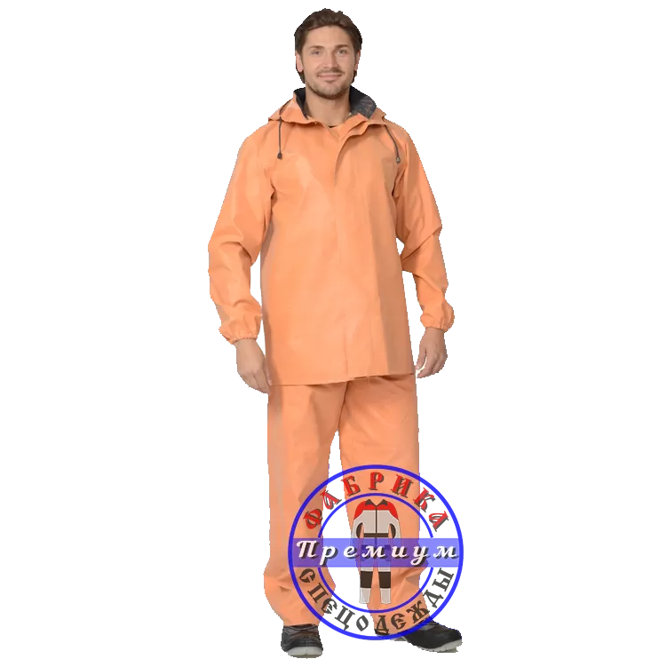 Костюм предназначен для защиты от воды, устойчив к морской воде и рыбьему жиру. Состоит из полукомбинезона и куртки с капюшоном. Куртка с центральной застежкой. Рукава с внутренней защитной манжетой. Полукомбинезон с наколенниками на бретелях. Рекомендуется для работников рыболовецких хозяйств и рыбоперерабатывающей промышленности.