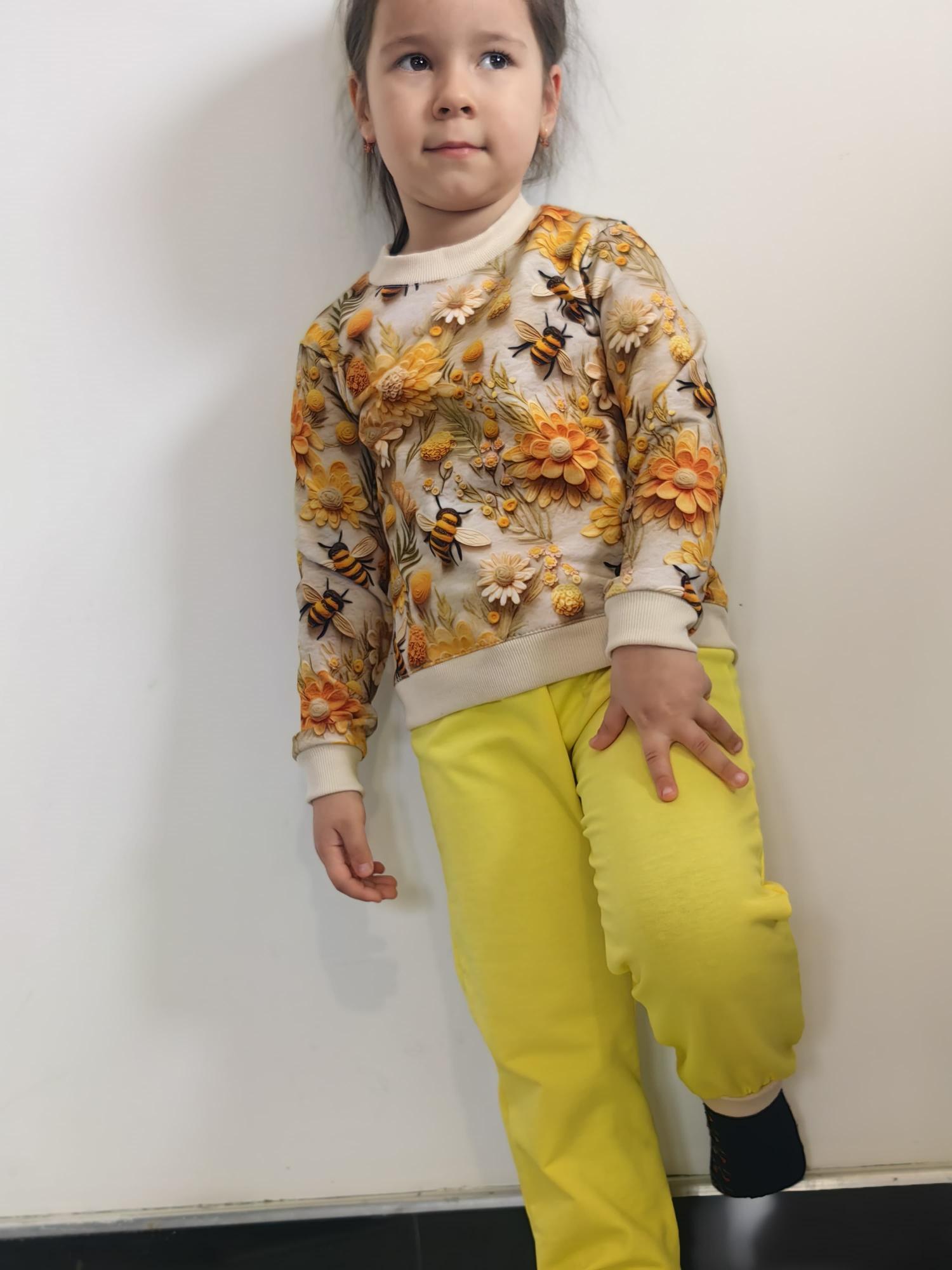 Свитшот с принтом «Пчелки» для девочек из футера двунитки. Стильная толстовка без капюшона от Российского производителя Элина brend. Спортивный модный свитшот удобного кроя предназначен для девочек от 3 лет до 7 лет и выполнен в размерах от 98 по 122. Модель оснащена эластичными манжетами из кашкорсе на рукавах и по низу изделия. Горловина толстовки широкая и удобная, в том числе для переодевания ребенка. Материал изготовления толстовки футер 2-х нитка без начеса, производство Турция. Вместо начеса внутренняя часть изделия выполнена в виде многочисленных петель - петля пенье, создающих нежную, ворсистую поверхность и как следствие тактильно приятные ощущения при носке. В меру теплая, мягкая и качественная трикотажная ткань свитшота обладает идеальным составом. В составе материала 95% хлопка и 5% лайкры, это дает изделию прекрасные дышащие и гипоаллергенные свойства заданные натуральным хлопком, а лайкра гарантирует дополнительную эластичность и износостойкость толстовки. Обратите внимание! Изделия рекомендуется стирать при t воды не более 30С, а гладить при t не более 140С с изнаночной стороны. Приятных покупок, с уважением Элина brend. Собственное производство в РФ.