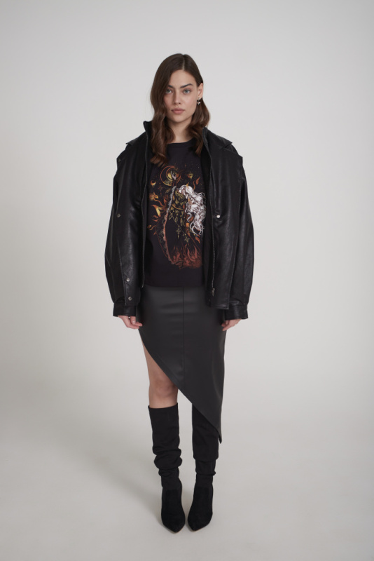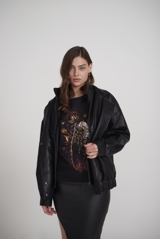 Куртка-оверсайз женская, с объемными рукавами, с двойной застежкой на молнию и кнопки, с воротником-стойкой и лацканами. Прорезные карманы по бокам. Демисезонная модель из эко-кожи. Такая верхняя одежда станет универсальной покупкой - кожаная куртка легко сочетается с ансамблями разных стилей: от джинсового до романтичного и спорт-шик, дополняя одежду в любой гамме.