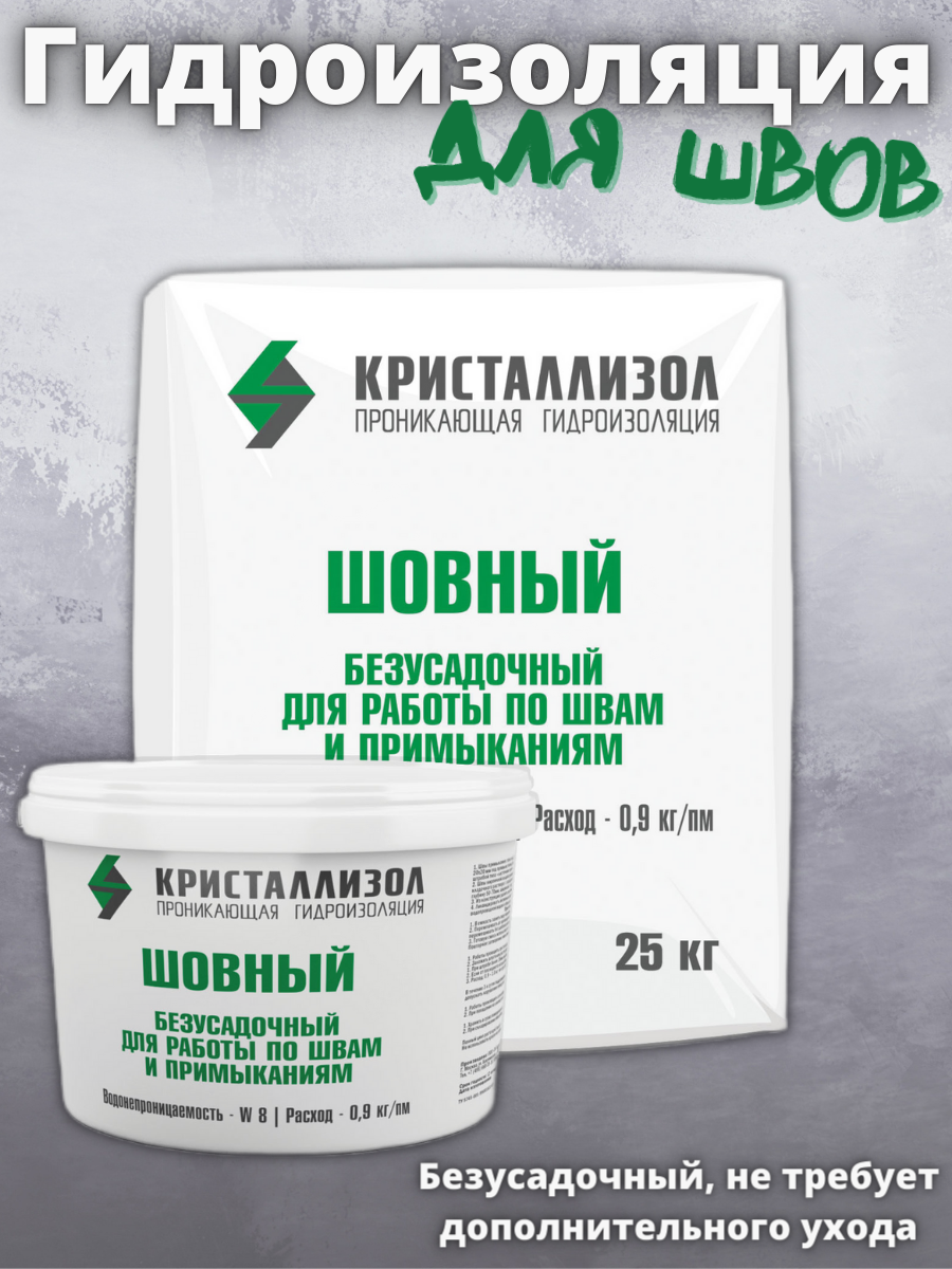 Безусадочный шовный гидроизоляционный материал проникающего действия.