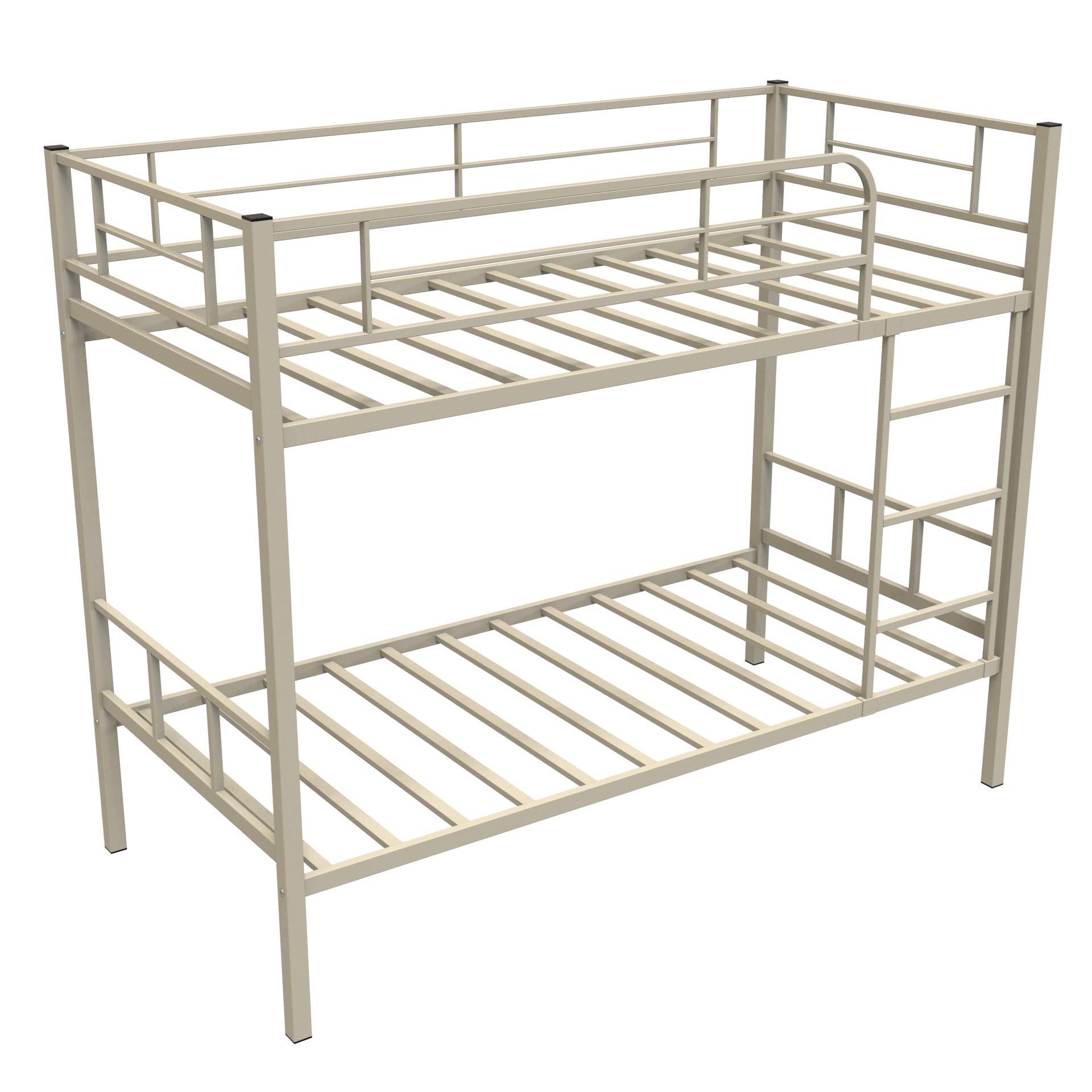 Недорогая металлическая кровать Севилья-2 бежевого цвета на двух детей – это отличное решение для детской спальни или комнаты подростка. Впрочем, ее технические показатели также подходят для организации полноценного отдыха взрослых – вахтовиков, водителей, курортников, туристов и т.д. Данная модель поможет вам оптимально использовать пространство в помещениях с ограниченной площадью. Купить металлическую кровать для взрослых и детей предлагает наш интернет-магазин. Металл не вызывает аллергию, на него не влияют перепады температур. На железе не приживается плесень и вредные насекомые.