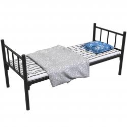 Модель COOL-1 – это готовое спальное место, состоящее из одноярусная металлическая кровать и набора спальных принадлежностей. Текстиль из Иваново – подушка ватная РВ/ПЭ 60/60; матрас ватный РВ/тик 190/80/8; полуторное одеяло из синтепона. Дизайн классический, а цена кровати из металла абсолютно бюджетная, качество высокое. Цвет покрытия – черный. Купить железную кровать можно в нашем интернет-магазине. Предложенная товарная позиция позволяет быстро организовать комфортное бюджетное спальное в рабочем общежитии или вагончике вахтовиков. Это модель пользуется популярностью у дачников и владельцев малогабаритного жилья.