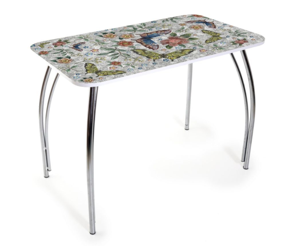 Кухонный стол обеденный БИТЕЛ СТОЛ ЛИЛИЯ (нога хром) (БАБОЧКИ, хром)