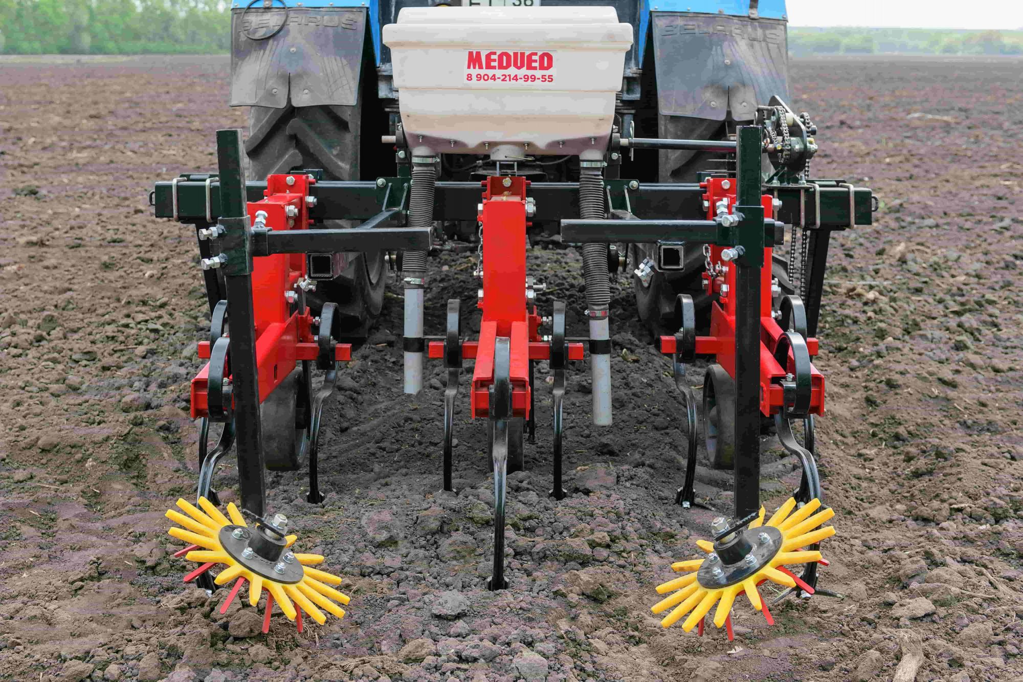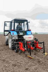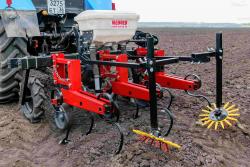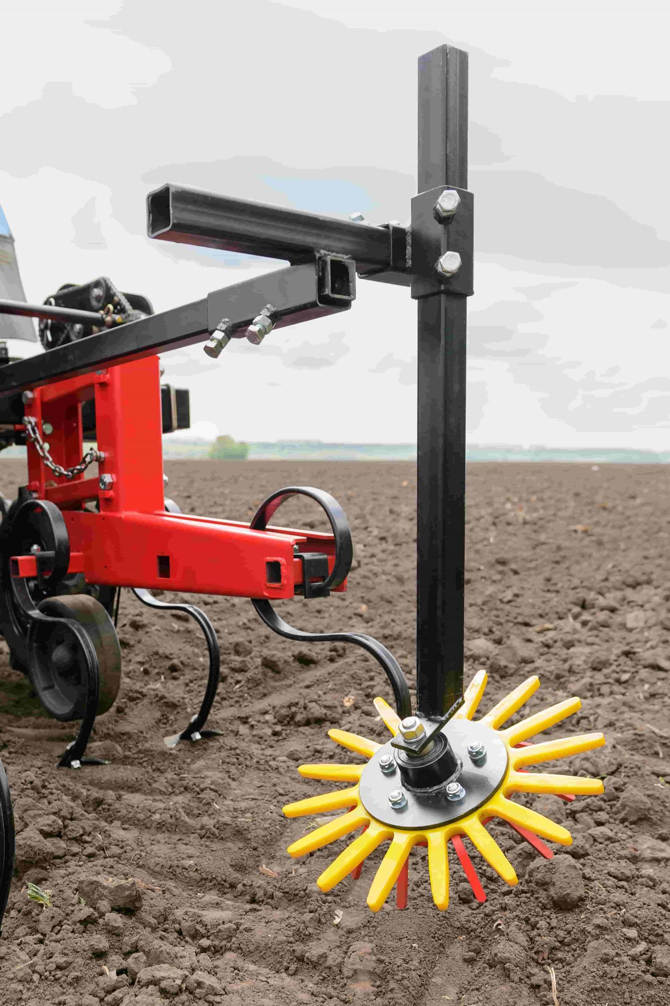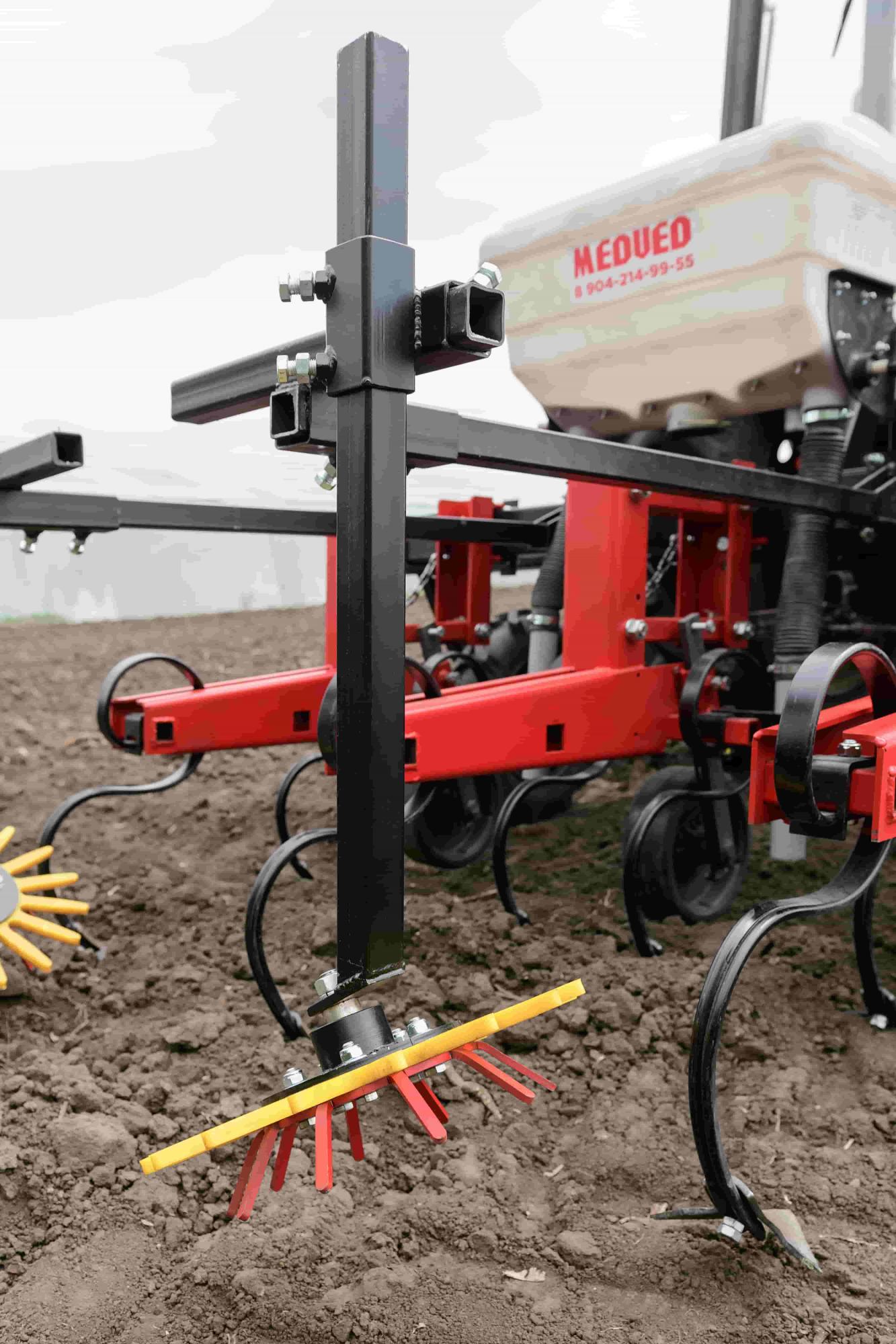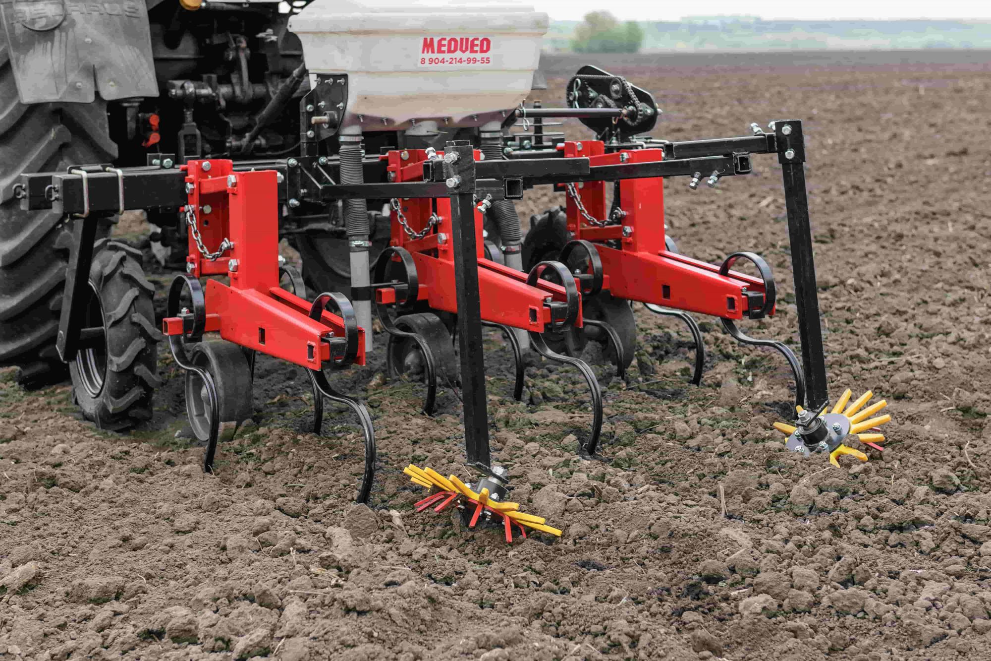 Пальчиковый культиватор с возможностью одновременной обработки междурядий и растений в рядке. Применяется при строчном посеве (посадке) овощных, бобовых и ягодных культур. Позволяет за один проход обработать до 4-х рядков с междурядьем 45 см, агрегируется к трактору от 20 л.с. На секции установлены S-образные рабочие органы. Лапы к стойке по выбору: 105 или 150 либо долотья. Рабочие органы в симбиозе с полиуретановыми роторами разрушают корку почвы, заглубляясь на 1,5-3 см, и удаляют сорняки между культурными растениями, не повреждая их. Данный культиватор незаменим в органическом земледелии, он помогает значительно сократить используемое количество гербицидов или вовсе отказаться от их применения.