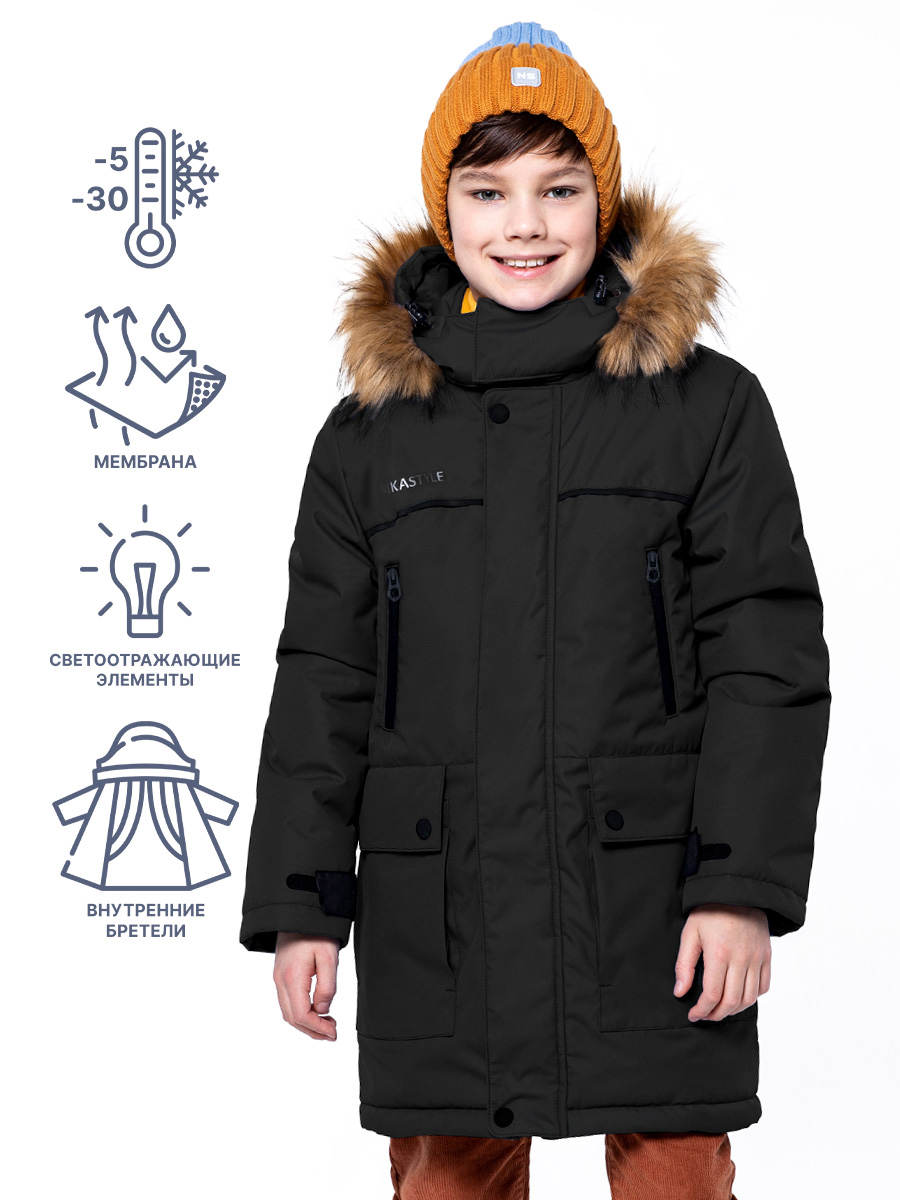 Куртка Камчатка из мембранной ткани 5000/5000 с водо- грязеотталкивающей технологией TEFLON. Мембранная ткань это непродуваемый и водонепроницаемый материал, который надежно защищает от ветра и влаги. Благодаря дышащим свойствам мембраны ребенку будет комфортно в любую погоду, и он не вспотеет. Ткань обработана снаружи экологически чистым протектором TEFLON для защиты от воды и грязи. Мембрана в сочетании с утеплителем нового поколения FIBERlite сохраняет тепло во время прогулок, позволяя телу дышать. Флисовая подкладка отводит влагу и имеет хорошие теплоизоляционные свойства. Зимняя продуманная кутрка со множеством удобных карманов. Функционал: центральная застежка на молнии, ветрозащитная планка, съемный капюшон и меховая опушка на молнии, кулиса для регулировки объема по капюшону. Мы все продумали до мелочей, поэтому модель дополнительно оснащена мягкими трикотажными манжетами и патами в рукавах , внутренняя бретель для возможности снять куртку в помещении, светоотражающие элементы для безопасности ребенка в темное время суток. Комфортная температура эксплуатации от 0° до -30° С. Рекомендуем приобрести комплектом аксессуары, обувь и другие вещи из капсулы в карточке товара, которые отлично сочетаются с изделиями коллекции.