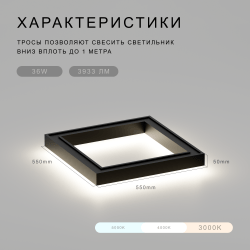Квадратный универсальный светодиодный светильник, 550*550*50 мм, 3000 К, 36 W