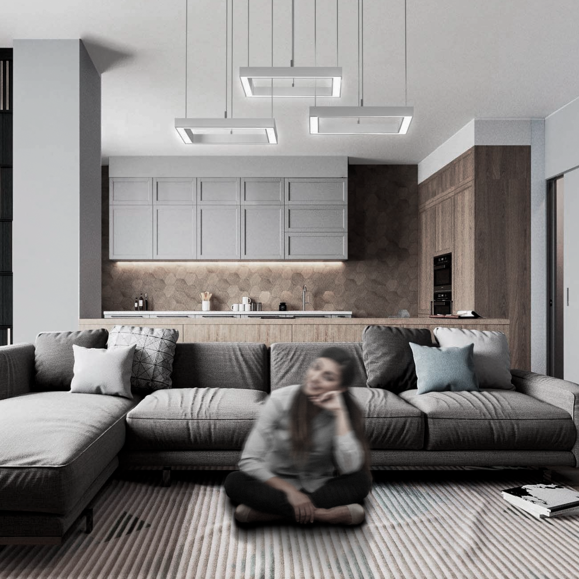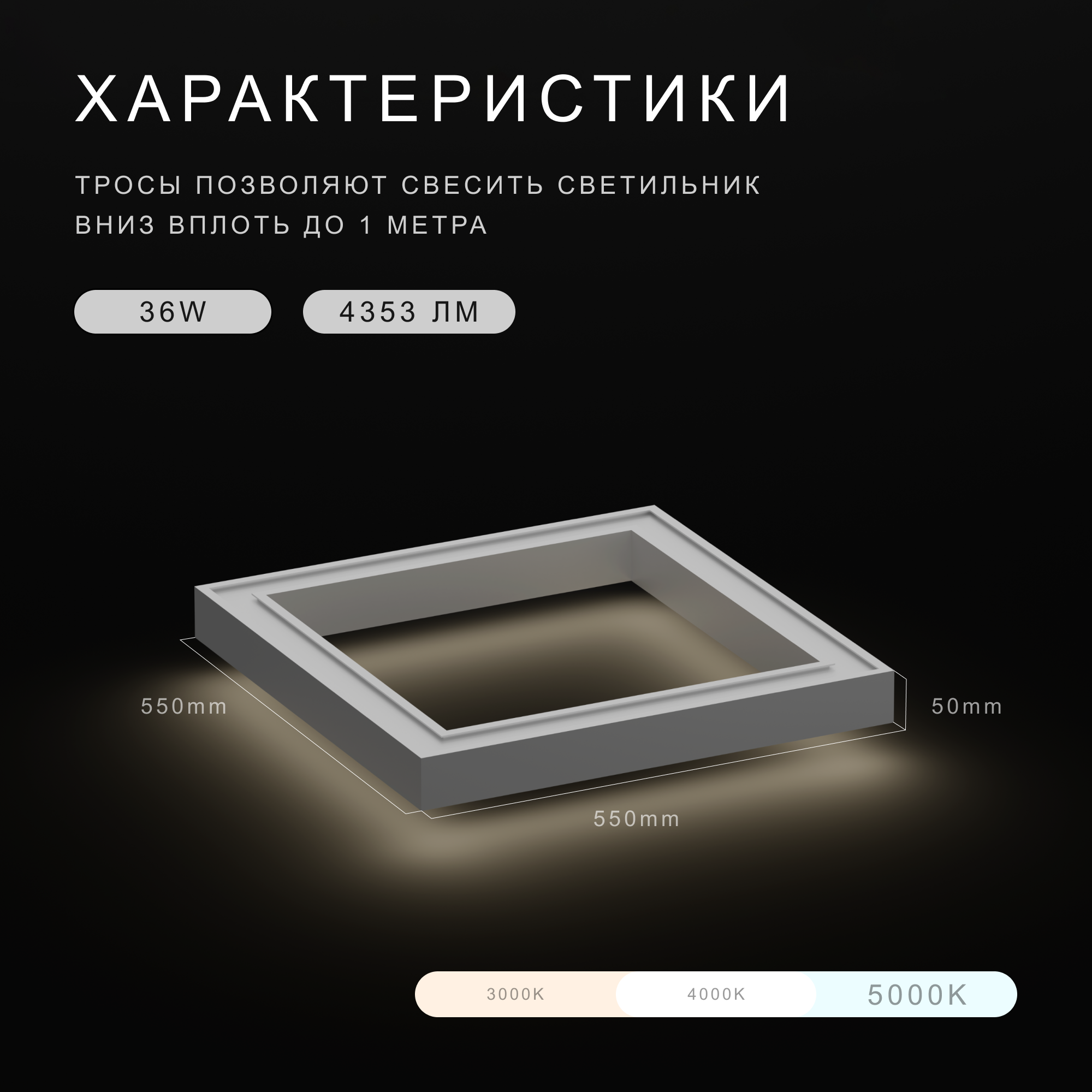 Отличный мощный, прочный подвесной квадратный светильник с чистым белым...