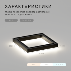 Квадратный универсальный светодиодный светильник, 550*550*50 мм, 5000К, 72W