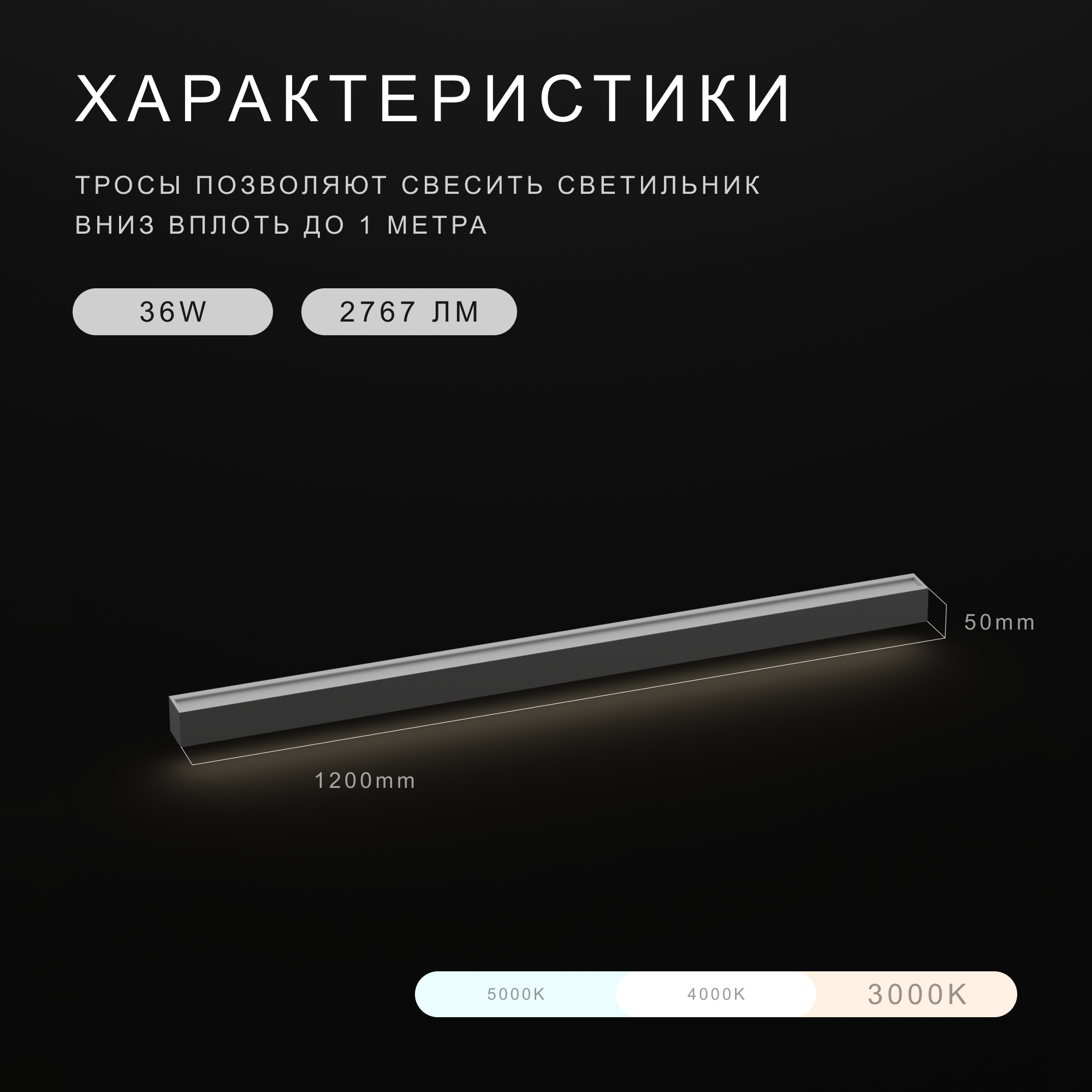 Линейный подвесной светильник с нейтральной белой цветовой температурой в 4000К...