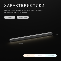 Линейный универсальный светодиодный светильник 1200*50*50, 5000К, 18W