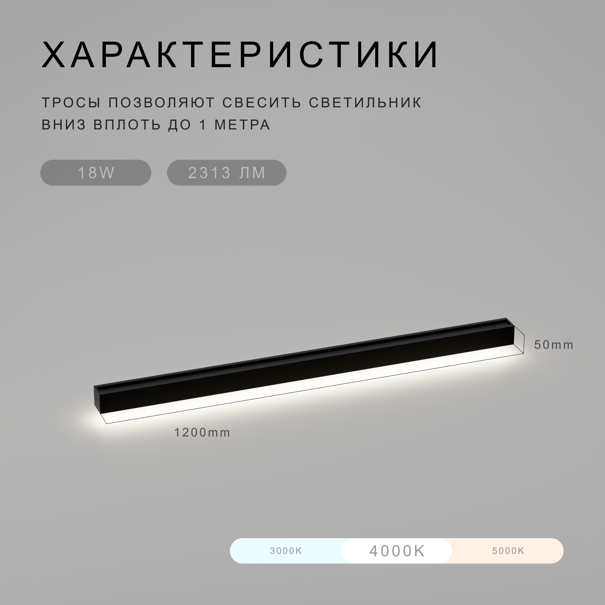 Линейный подвесной светильник с нейтральной белой цветовой температурой в 4000К...