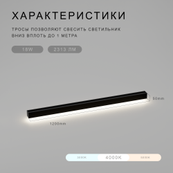 Линейный универсальный светодиодный светильник, 1200*50*50 мм, 4000К, 18W