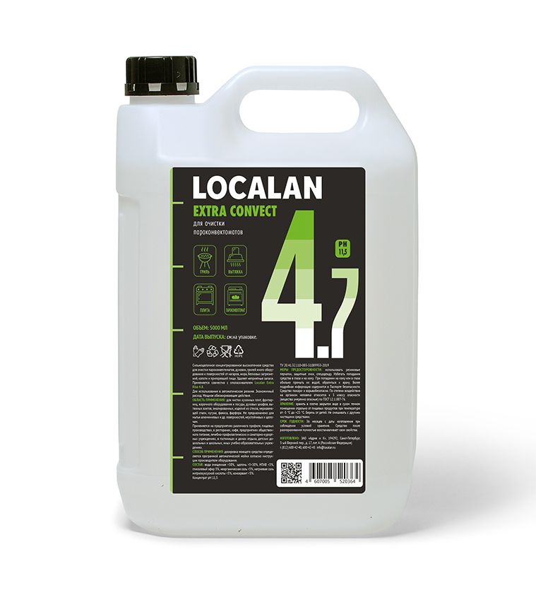 Мощный концентрат для пароконвектоматов, грилей и духовых шкафов. Удаляет пригар, жир, белковые загрязнения и копоть.
