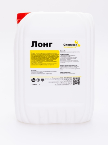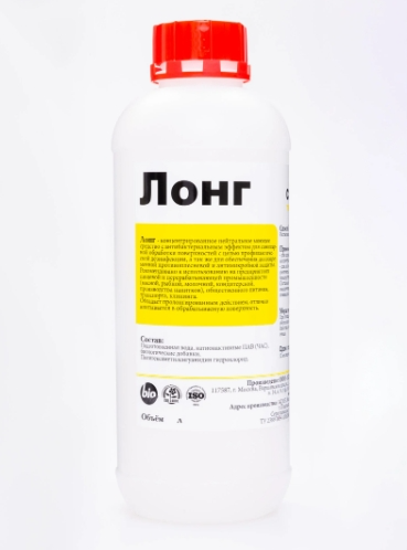 Рабочая концентрация препарата «Лонг» 1,0-10,0 % . Время обработки от 3 до 20 минут при температуре 15 – 700 С. Время смыва 2-7 минут. Перед использованием рабочего раствора следует тщательно отмыть поверхности от уже образовавшегося грибка хлорсодержащими средствами (например «Термитом»). При дезинфекции помещений, облицованных кафельной плиткой, и обработке различных поверхностей для профилактики образования плесени (полы, стены и т.п.) 100%-ый раствор не смывают.