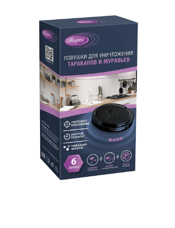 Ловушка для тараканов в виде пластикового контейнера с отверстием MG-L-001 - это эффективное средство и надежный способ забыть о неприятном соседстве с вредными насекомыми. Диск круглой формы оснащен приманкой с уникальной формулой и усиленным составом (высококонцентрированный инсектицид с привлекательным для тараканов или муравьев запахом и вкусом). Контейнеры для уничтожения вредителей расставляют в местах возможного обитания или передвижения насекомых: около вентиляционных отверстий, у входов и выходов отопительных и канализационных труб, под раковиной на кухне и в ванной комнате, около мусорного контейнера, под кухонной плитой или холодильником, прямо за ними. Клейкая лента на контейнере позволяет приклеить его к вертикальной поверхности (для этого снимите с основы защитную пленку). Ловушки для ликвидации тараканов или муравьев следует обновлять каждые 6 месяцев. Повторная обработка гарантирует полноценную защиту от вредителей (тараканов, рыжих или фараоновых муравьев). На площадь около 10 кв.м устанавливаются 3-6 контейнеров. Принцип действия ловушки прост: таракан улавливает привлекательный для него запах приманки, съедает ее и выползает из контейнера. Затем направляется в колонию, где заражает своих сородичей и погибает через несколько часов. Профессиональный препарат - ликвидатор предназначен для борьбы с насекомыми в доме или квартире, в дачном домике, любом помещении. Безопасен для домашних животных. Это настоящее оружие возмездия для избавления от неприятных насекомых, мощный уничтожитель, который гарантирует быстрый и хороший результат против незваных гостей, а также безопасность для людей и питомцев. В линейке бренда Ma Guse представлены разные ловушки в комплектах из 4, 6 или 12 штук, наборы серии Force и Clean. Произведено в России.