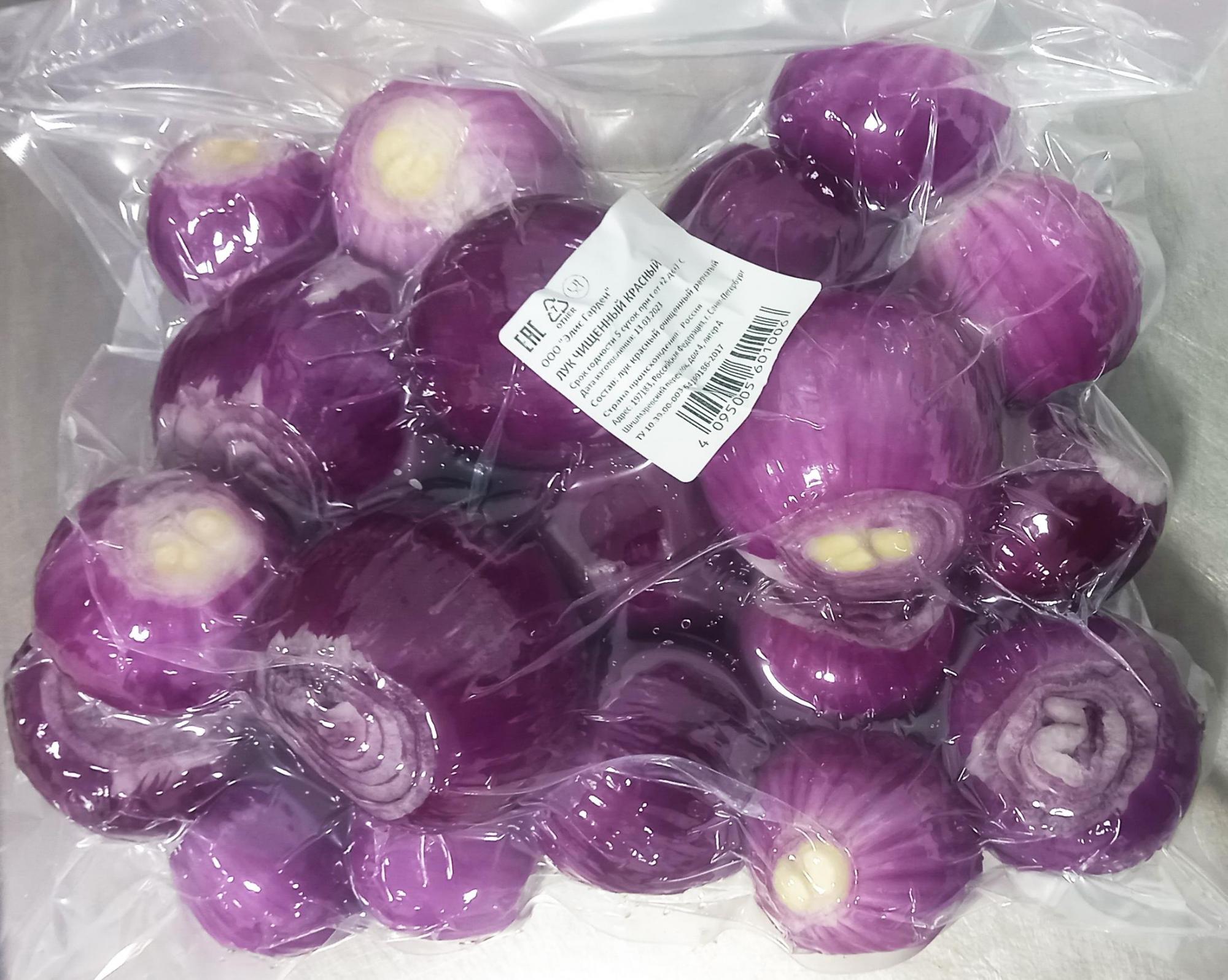 Лук красный репчатый свежий очищенный в вакуумной упаковке 5 кг нетто, другой вес - под заказ, нарезка - под заказ.
