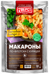 Макароны, курица, лук репчатый свежий, морковь свежая, соль поваренная, масло растительное, вода, специи (кориандр, горчичный порошок, паприка красная молотая, чеснок молотый, орегано, сумах, перец красный чили молотый, мука рисовая, перец душистый молотый, лавровый лист молотый, черный перец молотый, петрушка сушеная).