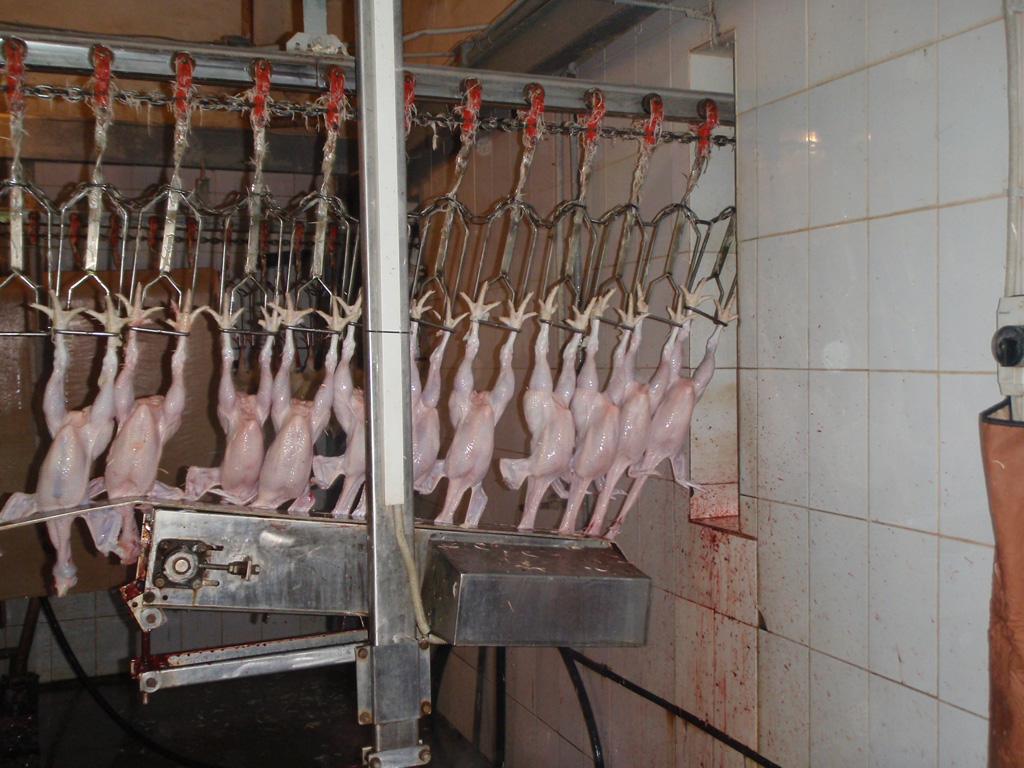Задача устройства состоит в том, чтобы обрезать ноги, подвешенной на крючках...