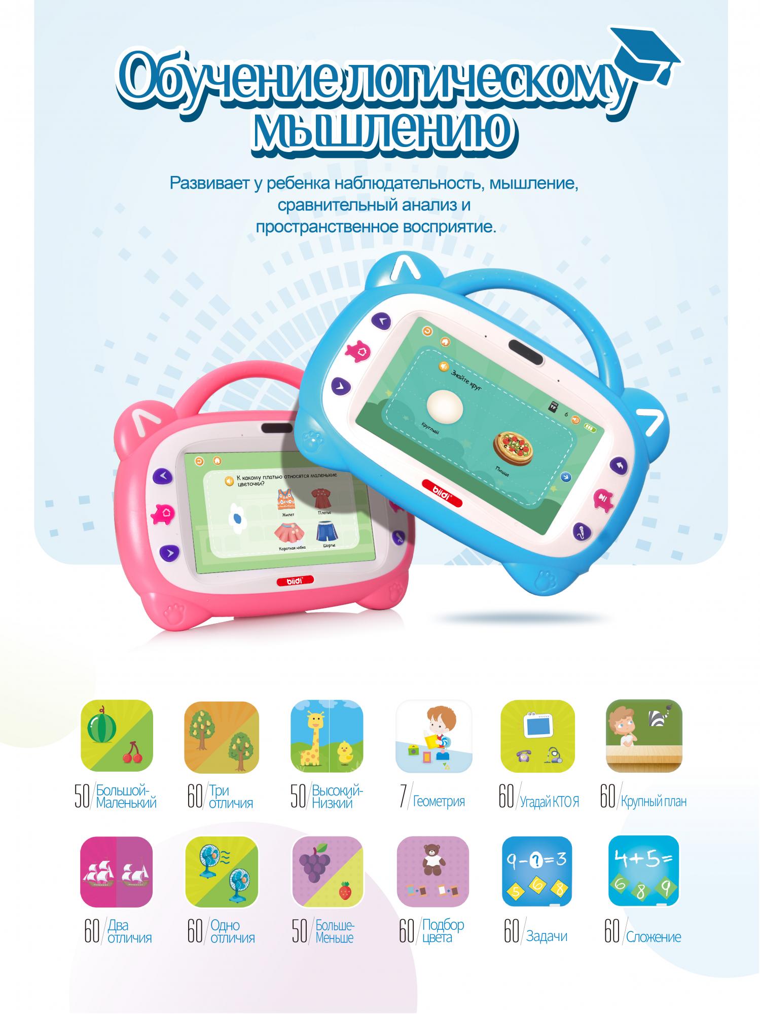 1. базовое обучение: русский алфавит, английский алфавит, английские фонетические символы, распознавание цветов, изучение цифр и другие 1000+ обучающих материалов.