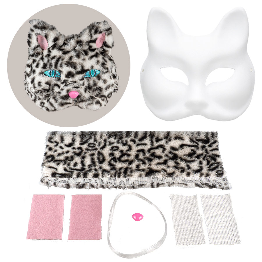 В набор входит заготовка маски Кошка из папье-маше, искусственный мех, нос, флис, леска для усов, канва для глаз.
