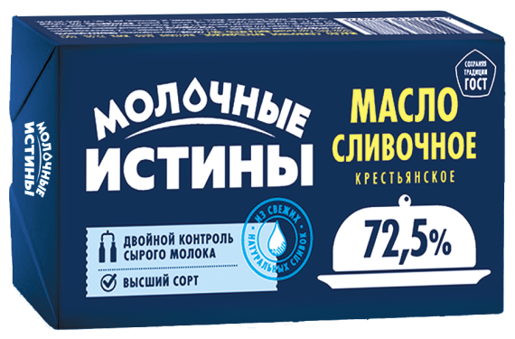 Масло имеет превосходный вкус и нежный сливочный аромат. Производится из высококачественных натуральных сливок. Бутерброд, каша и любое другое блюдо станут еще вкусней с маслом «Молочные истины».