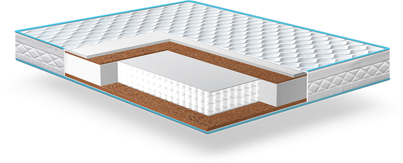 Разносторонний матрас. Одна сторона - средней жесткости, другая жесткая. Средняя жесткость получается из сочетания кокоса и biofoam 2 см, а жесткость с другой стороны обеспечивается двумя сантиметрами кокоса.