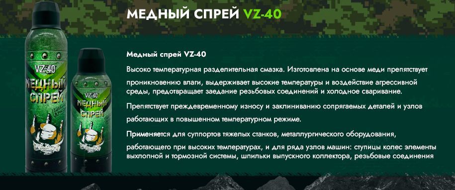 Медный спрей. Высокотемпературная разделительная смазка. Изготовлена на основе меди, припятствует проникновению влаги, выдерживает высокие температуры и воздействие агресивной среды.