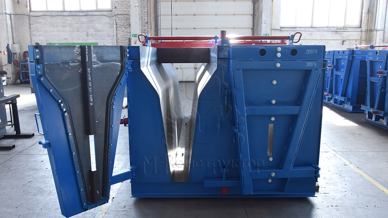 Съём изделий из металлоформы, а затем переворот для их установки в рабочее положение выполняются при помощи траверсы-кантователя (также выпускается компанией «М-Конструктор»).