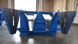 Конструктивно металлоформа состоит из несущей балки, поворотного и стационарного фиксаторов, двух вращателей (они установлены на фиксаторах), 4-х гидроцилиндров, гидростанции с рабочим давлением 160 МПа, электрошкафа и пульта управления.