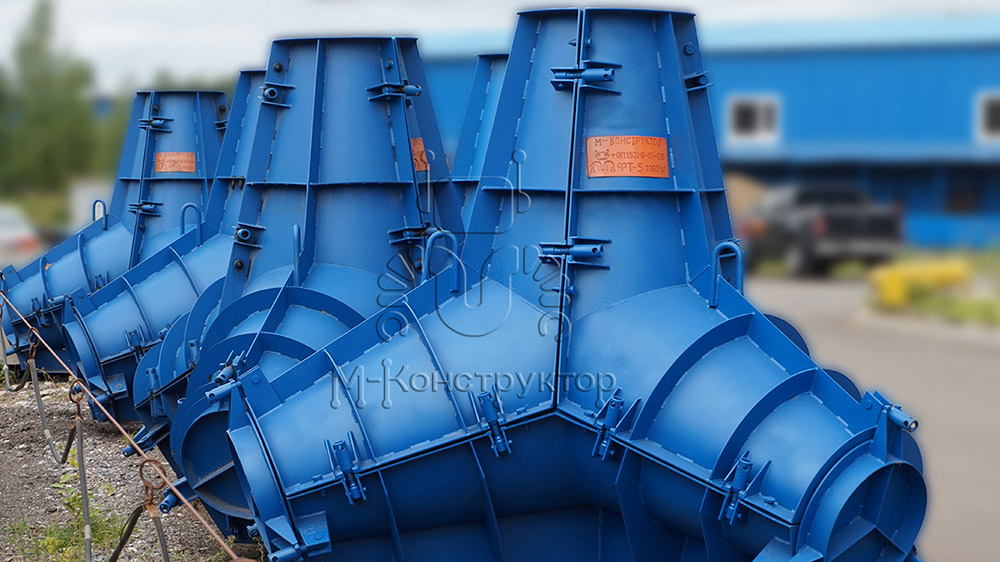 Формы для тетраподов от "М-Конструктор" разборные. Состоят из одной нижней детали — основания и трех формообразующих деталей. Бетонный состав заливается через верхнюю горловину изделия.