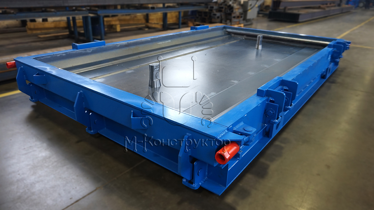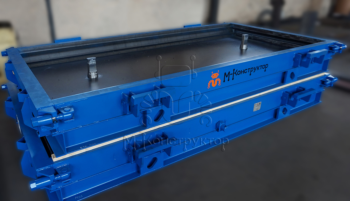 Металлоформы оборудованы откидными бортами, что облегчает распалубку. В замках на металлоформах производства "М-Конструктор" применяется гайка с внешним шестигранником для возможности применения пневмо- или электрошуруповерта. Это ускоряет процесс распалубки. Также в комплекте есть накидная головка с отверстиями под монтажку. По бортам металлоформы размещаются монтажные петли для удобства ее перемещения при эксплуатации.
