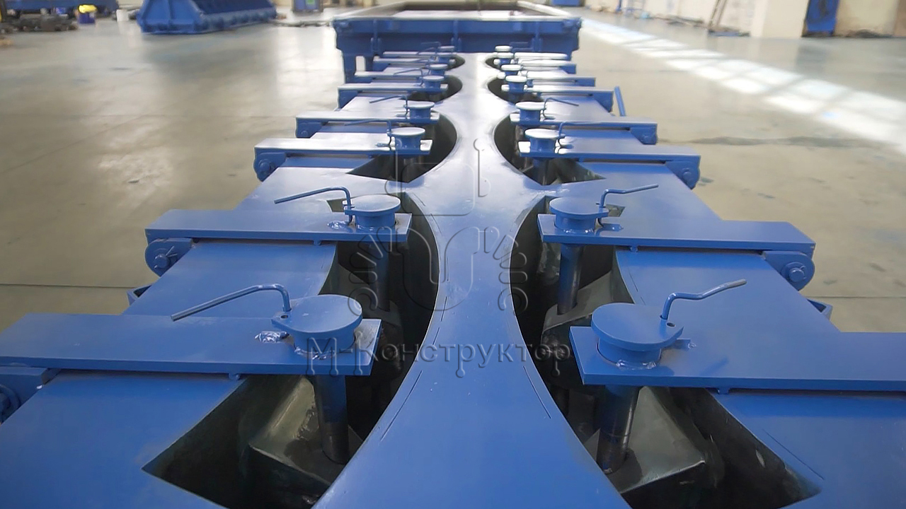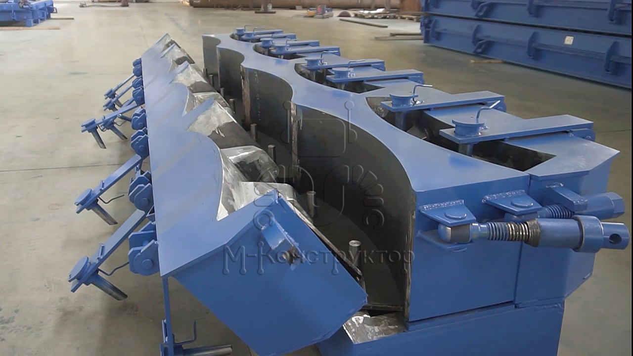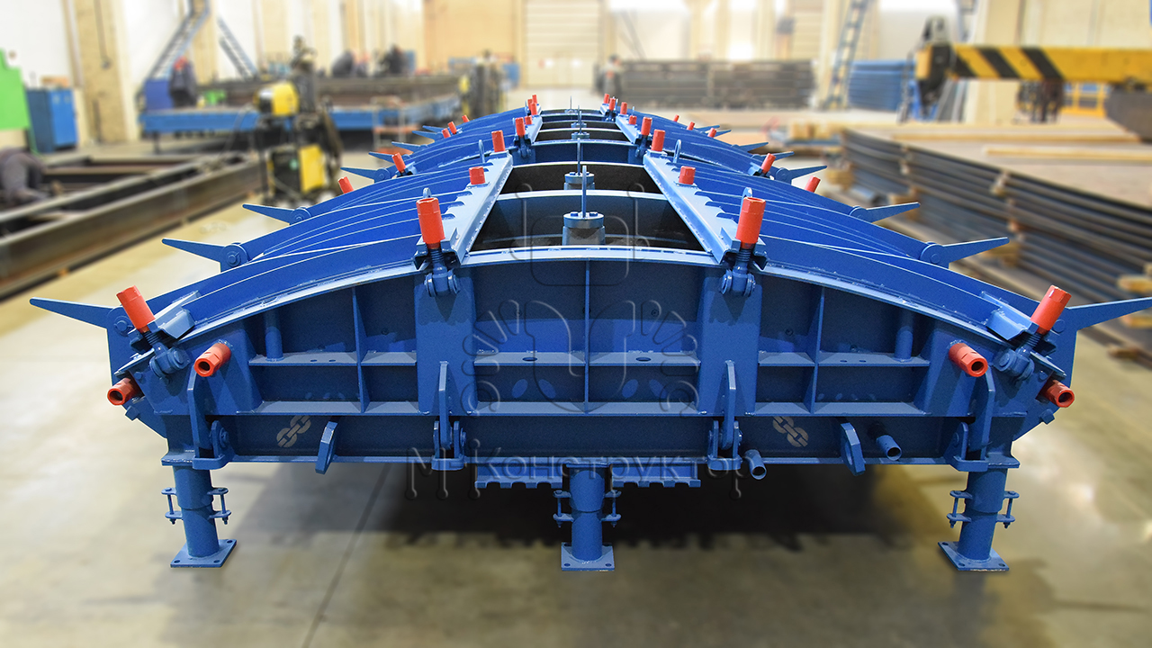 «М-Конструктор» производит металлоформы для производства железобетонных тюбингов, где в одной форме одновременно отливается 8 элементов, которые составляют один полноценный сегмент тоннельной трубы.