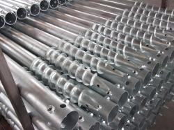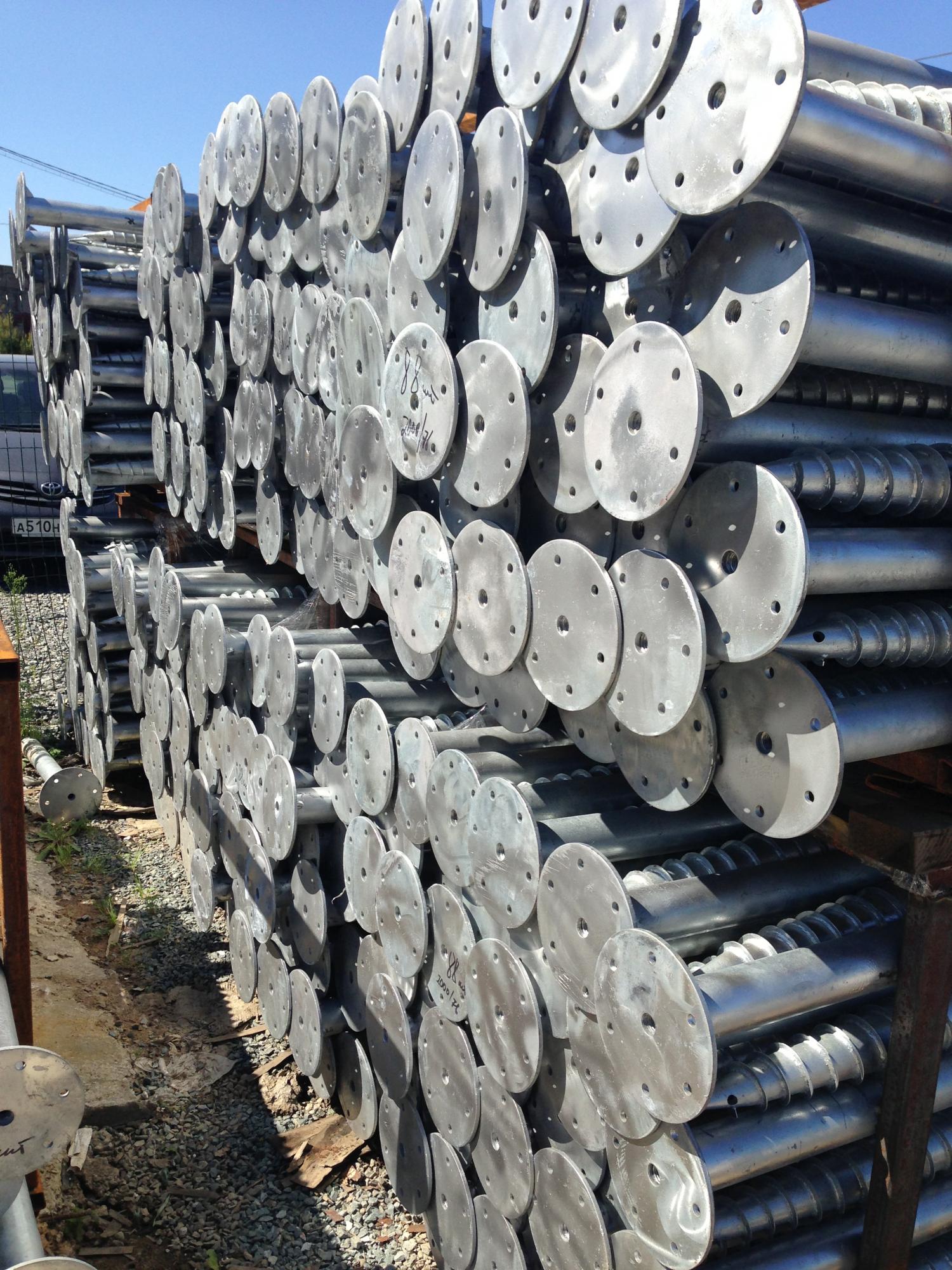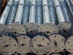Свая многовитковая конусно-спиральная изготовлена из ЭСВ трубы Ст3кп по ГОСТ 10704-91 обсаженной (закованной) на конус, с приваренной спиралью. Для прохождения сложных грунтов конус сваи дополнительно заковывается. При монтаже вкручивается в грунт как «шуруп». Наличие спирали не позволяет свае двигаться даже при весеннем пучении грунта. При завинчивании межвитковые промежутки грунта уплотняются спиралью сваи – этим объясняется его большая несущая способность по сравнению с обычной лопастной сваей. Вид покрытия: без покрытия, стандартное - грунт-эмаль ГФ-21, премиум - горячее оцинкование по ГОСТ 9,307-89. Круглый фланец является универсальным, так как свая с таким фланцем может быть заглублена на необходимую отметку с неизменной ориентацией фланца. В дальнейшем на фланец при помощи болтов закрепляются стойки или балки. Обязательным условием при монтаже является, чтобы фланец не лежал на земле, иначе силы морозного пучения будут "выдёргивать" сваю за фланец. Поэтому, если необходимо закрутить сваю в уровень с землёй, в районе фланца лучше сделать небольшой приямок и отсыпать его гравием или керамзитом, либо закрутить сваю немного выше уровня земли.