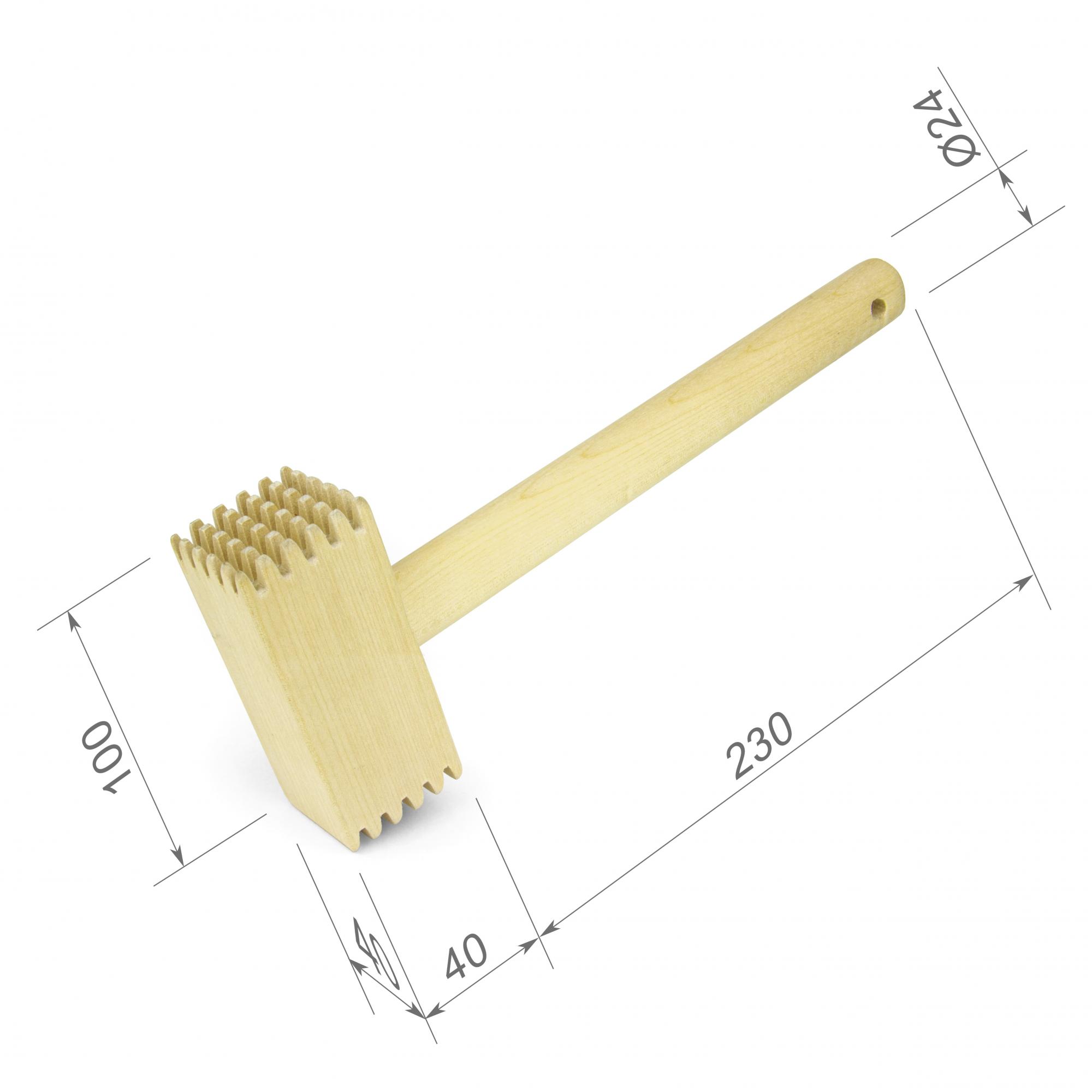 Молоток для мяса изготовлен из натурального дерева (береза). Молоток для мяса разделочный сделает традиционное мясное блюдо особенно мягким и деликатным. Кухонный инструмент выполнен из березы. Надежная конструкция сделает достаточно утомительный кулинарный процесс удобнее и легче.