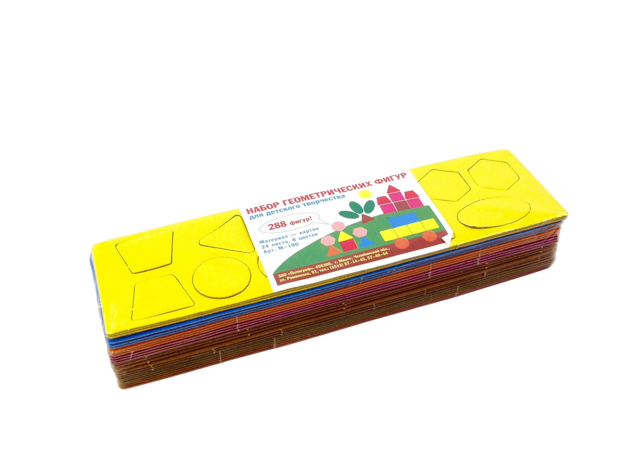 Набор геометрических фигур в пластине из микрогофрокартона, для детского творчества. 8 цветов, 288 элементов. В упаковке 24 набора.