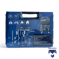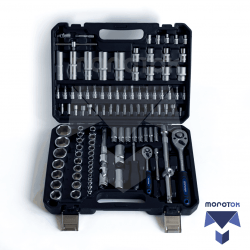 Головки торцевые TORX ¼" 5 шт; Головки торцевые TORX ⅜" 6 шт; Головки торцевые TORX ½" 3 шт; Шестигранники 5 шт; Головки со вставками ½" 2 шт; Головки со вставками ¼" 30 шт; Биты 8 мм 30 шт; Биты 5.35мм 44 шт;