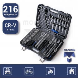 Головки торцевые TORX ¼" 5 шт; Головки торцевые TORX ⅜" 6 шт; Головки торцевые TORX ½" 3 шт; Шестигранники 5 шт; Головки со вставками ½" 2 шт; Головки со вставками ¼" 30 шт; Биты 8 мм 30 шт; Биты 5.35мм 44 шт;