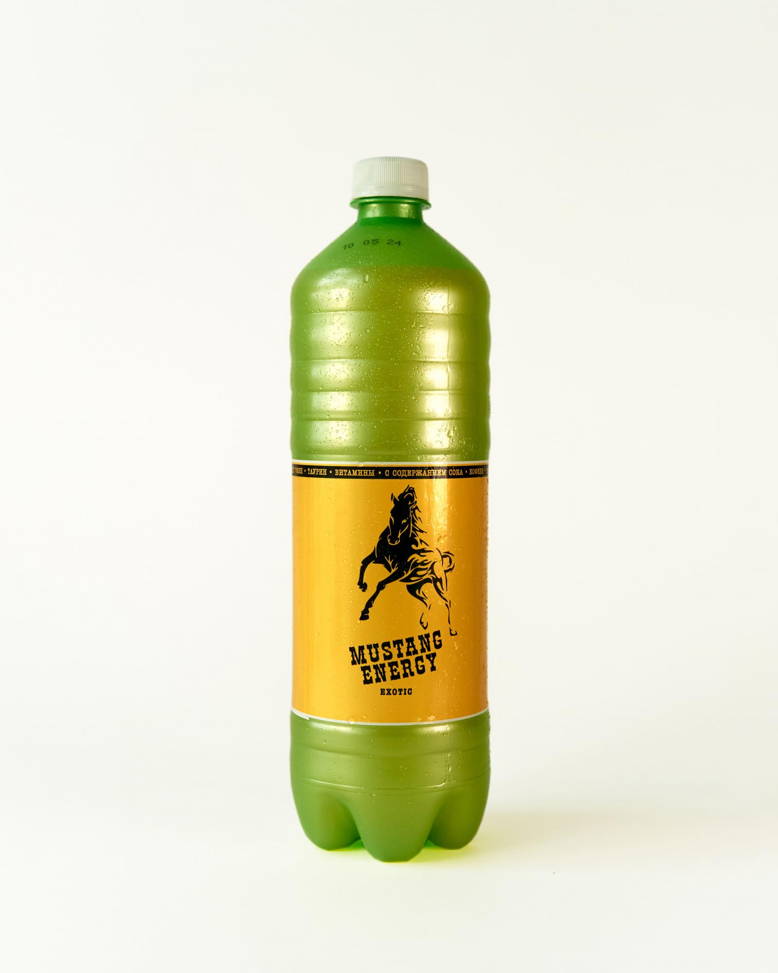 Напиток безалкогольный сильногазированный «Мустанг Энерджи Экзотик (Mustang Energy Exotic)» ГОСТ 28188. Состав: специально подготовленная питьевая вода, сахар, патока крахмальная, фруктоза, декстроза, концентрированный сок апельсина, концентрированное пюре манго, стабилизатор (гуммиарабик), эмульгатор (эфиры глицерина и смоляных кислот), натуральные ароматизаторы (эфирные масла (цитрусовые), «тип Манго»), ароматизаторы, краситель (Е160а), вещество вкусоароматическое натуральное, антиокислители (Е300, Е307, Е304i), регуляторы кислотности (кислота лимонная, цитрат натрия), премикс для напитков (таурин, кофеин, экстракты гуараны, женьшеня, витамины (В8, В6, В12), подсластитель (сукралоза), консерванты - бензоат натрия, сорбат калия.