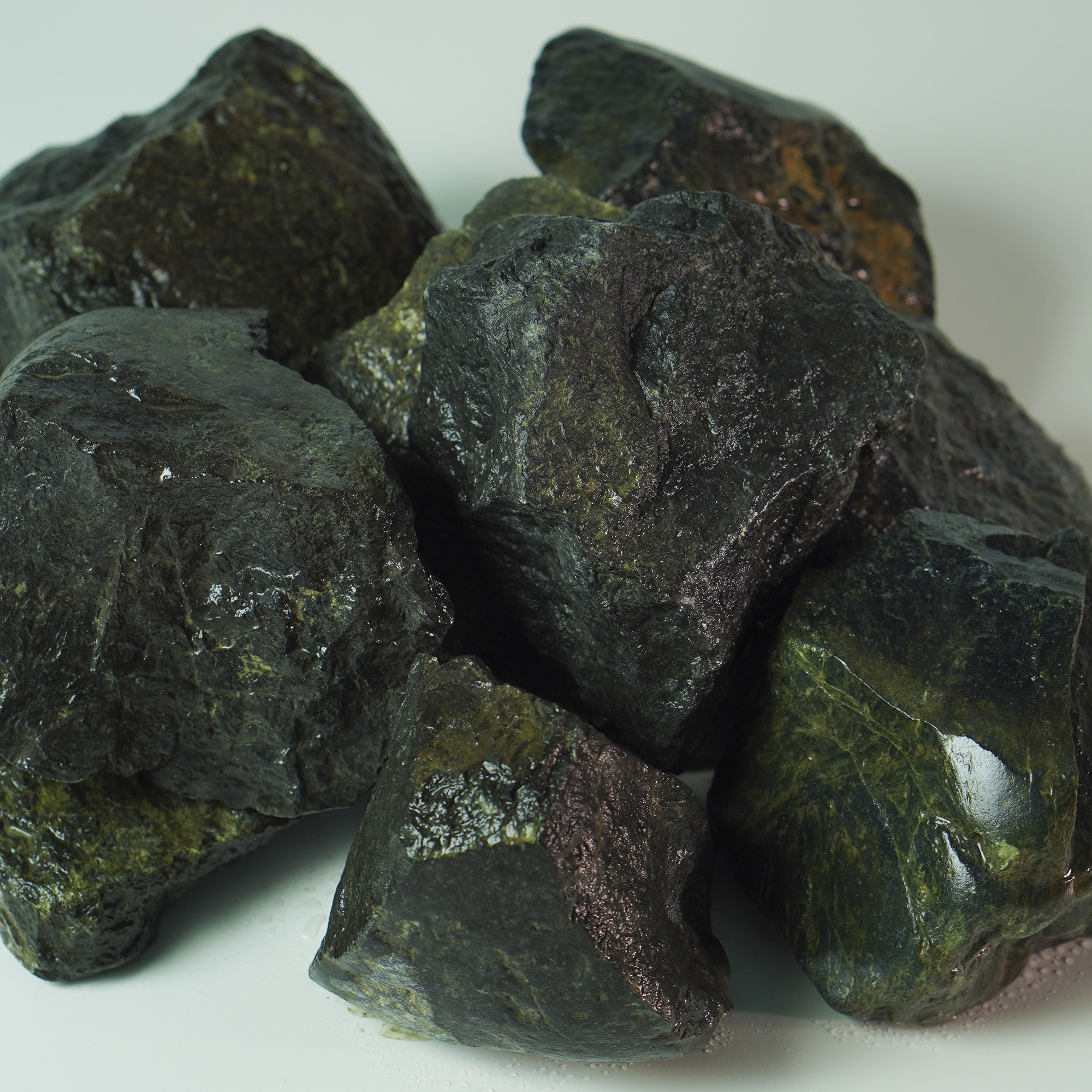 Черный Нефрит по праву называют «Мечтой парильщика» за способность выдерживать большие температуры и производить мягкий и самый вкусный пар. Необыкновенное сочетание Нефритом практически всех лучших свойств отдельных минералов, используемых в бане, подтверждает его высокий статус!