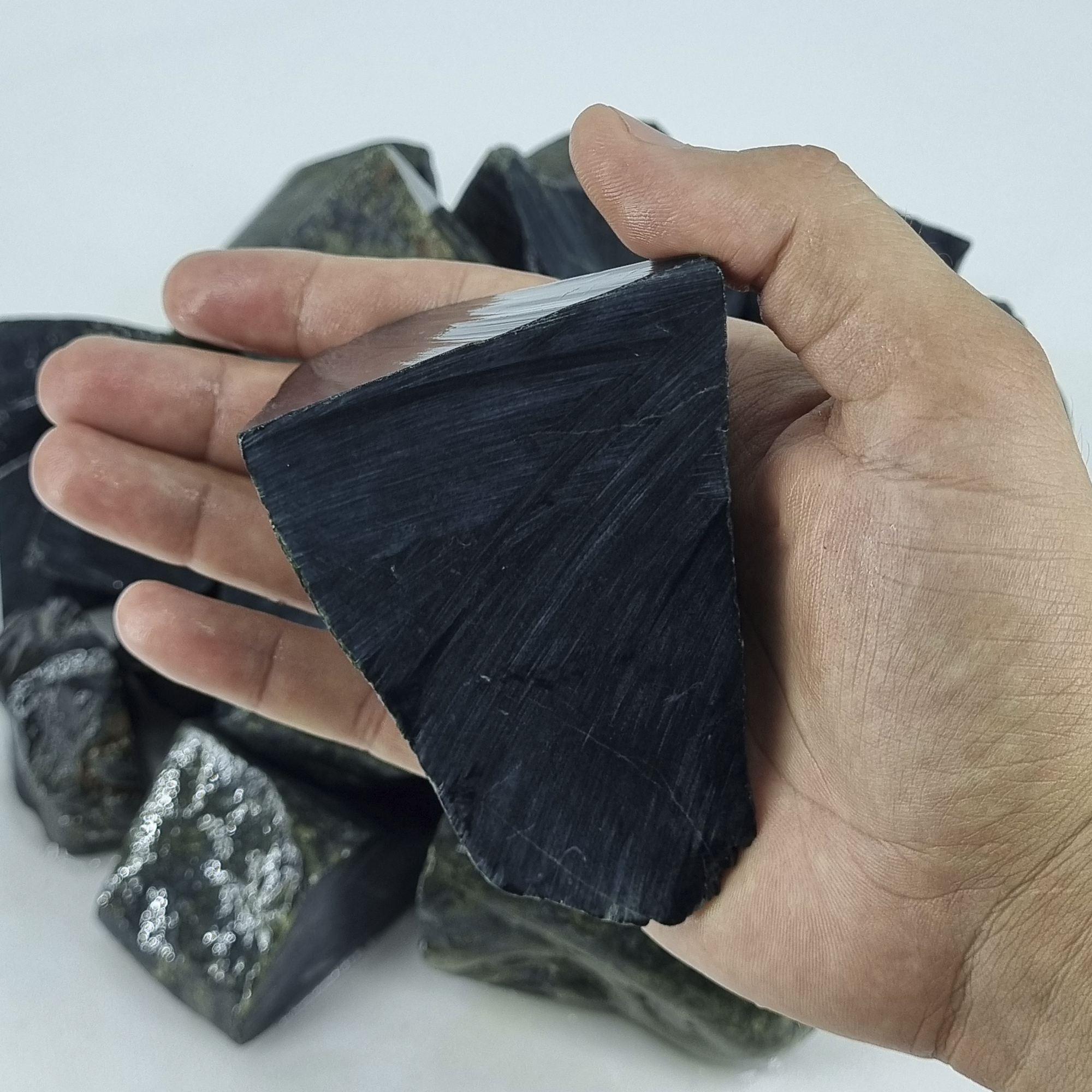 Черный Нефрит по праву называют «Мечтой парильщика» за способность выдерживать большие температуры и производить мягкий и самый вкусный пар. Необыкновенное сочетание Нефритом практически всех лучших свойств отдельных минералов, используемых в бане, подтверждает его высокий статус!