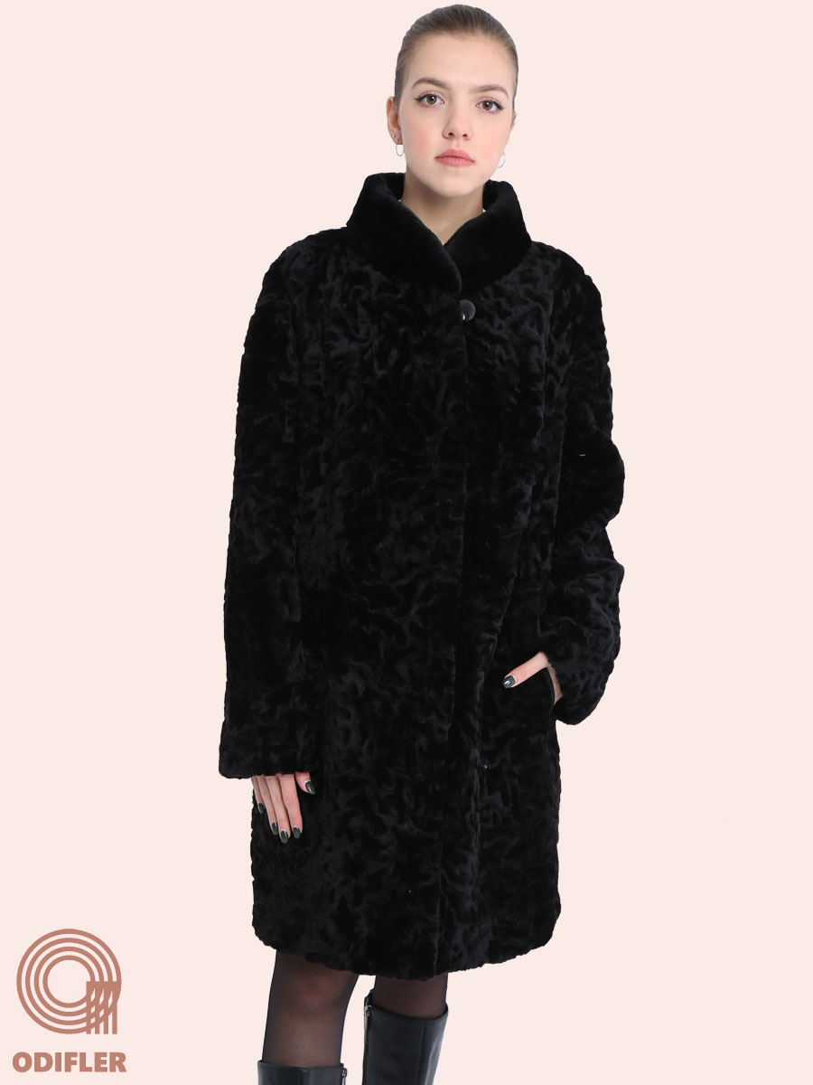 Длина изделия по спинке: Длина изделия 88 – 90 см. Шуба пошита с учётом свободы движений, размеры соответствуют Российским стандартам. Карманы средней глубины отделаны натуральной кожей (замша, гладкая кожа или кожа с финишным покрытием). Подкладка, полностью пришита к подолу шубы. Воротник-стойка полностью выполнен из меха. Утеплитель (синтепон) на полочках и спинке. Застёжка на шубных крючках, на горловине – одна пуговица.